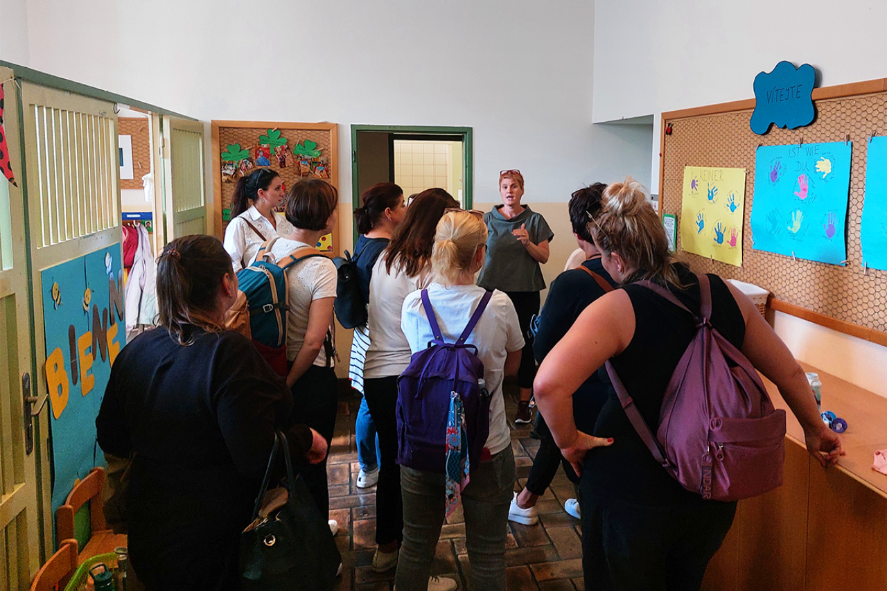 Dne 18. září proto zástupci vídeňského odboru mateřských škol (MA 10) přivítali své pražské kolegy a provedli je celým areálem kampusu. Hosté z Prahy následně navštívili také dvojjazyčnou Mateřskou školu Komenský na náměstí Sebastiansplatz.